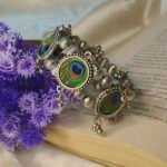 Inspired by the timeless elegance of the peacock, this kada features vibrant peacock feather motifs that bring a regal and ethnic charm to your wrist. The antique silver base adds a touch of vintage beauty, making it perfect for festive looks and traditional fits.✨ Features: